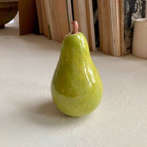 Decorative ceramic pear. Nice weight to it. Looks great standing or on its side as a standalone sculptural object, or as a pop of colour on the kitchen table or counter.
