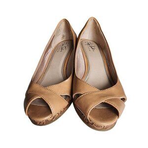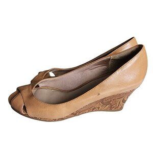 LifeStride Genuine Leather Peep Toe Platform Wedge Heels Tan Size 9