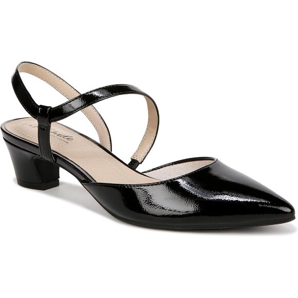 LifeStride Womens Black Patent Polyurethane Pointed Closed Toe Minimalist Pump