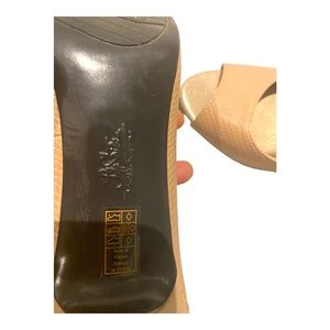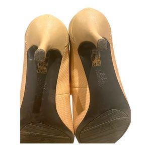 Comfortable & stylish retro inspired nude peep toe heels. Embossed snakeskin print front with smooth back