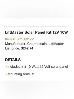 Liftmaster Solar Panel