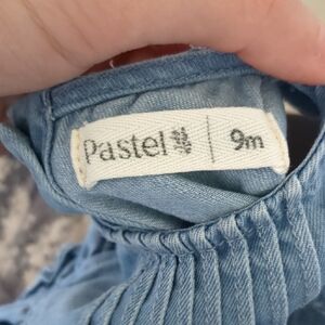 Charming light blue romper with ruffled sleeves. Ideal for everyday wear.