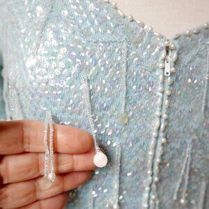 VINTAGE GLAM: Light Blue Sequin & Faux Pearl Sweater