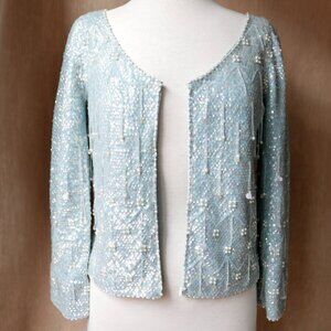 Light Blue Beaded Sequin Cardigan Sweater Top