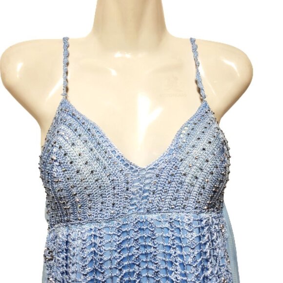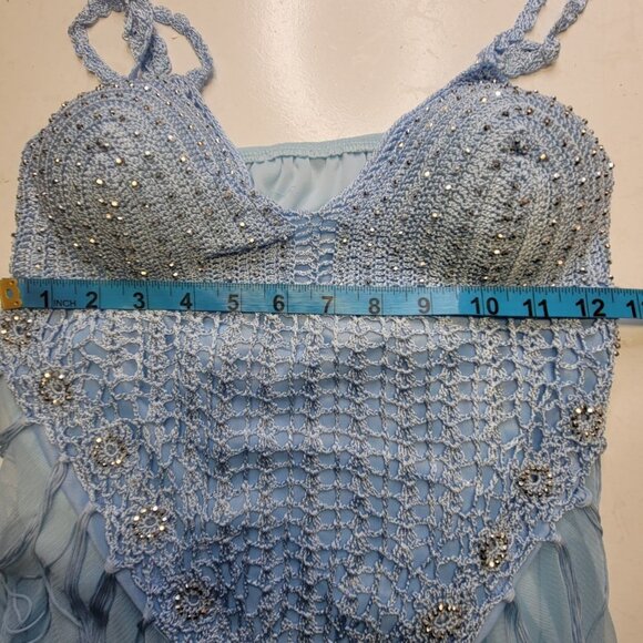 Light Blue Bellydance Top or Tank Top with Lace, Sequins and Tassels!