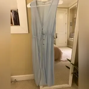 Super light chiffon cover up. Really nice for the summer to throw over dresses or swimsuits to add a touch of light blue or length.