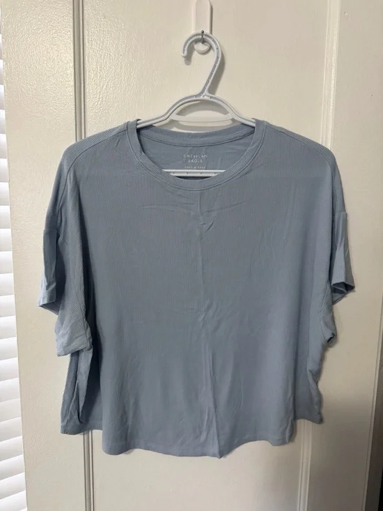 Light Blue Cropped Boxy Ribbed Tee
