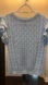 Chic light blue knit top with ruffle sleeves. Features a stylish cable and diamond pattern. Ladies size medium