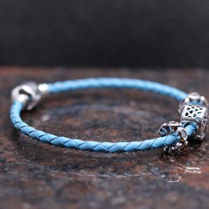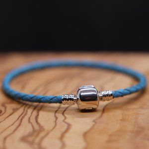 Light Blue Leather Bracelet with Sterling Silver Barrel Clasp - BRAND NEW