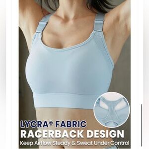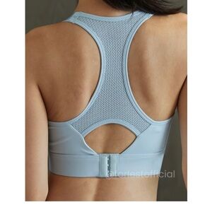 Denver Running Sports Bra from brand Forlest. This bra has a Racerback style with adjustable band + straps and fixed (non removable) padding. Light blue colour. Comes with a mesh laundry bag and soft measuring tape. Size XL+ which fits sizes 32I and 34DD-H. I personally wear a 34G and this fits me. Only tried on once.