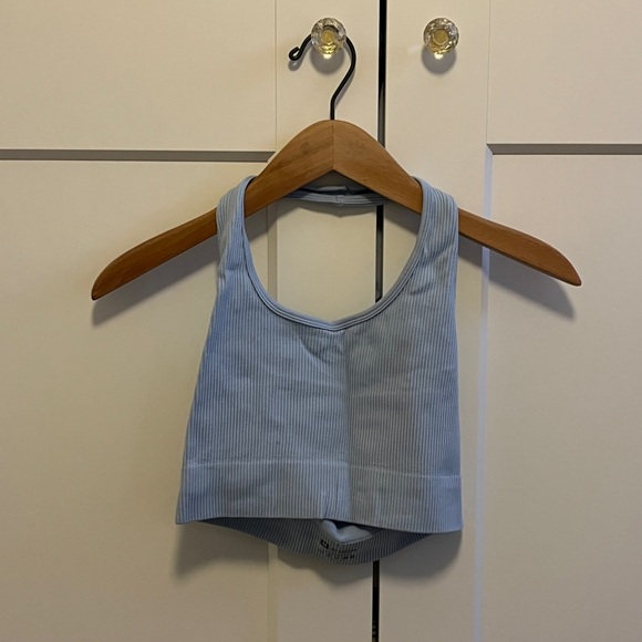 Stylish light blue and green ribbed crop top. Perfect for casual wear. Both for $10.