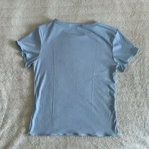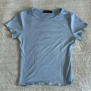 Light blue ribbed tee. This is a perfect basic to have for fall (or summer, winter, spring). The vibrant blue is an outfit staple. Perfect back to school staple.