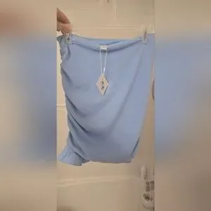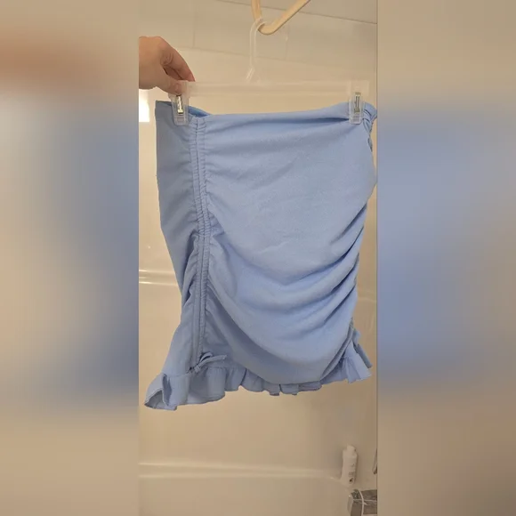 Stylish light blue ruched skirt. Perfect for casual outings.