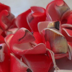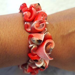 The necklace has a unique light blue colour with a beautiful glow. The bracelet is a unique coral and black colour. Both are in excellent condition. Please see photos for details.