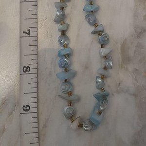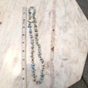 Light Blue Shell and Stone Necklace/ Coral coloured Shell Stretch Bracelet