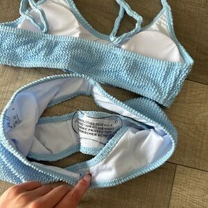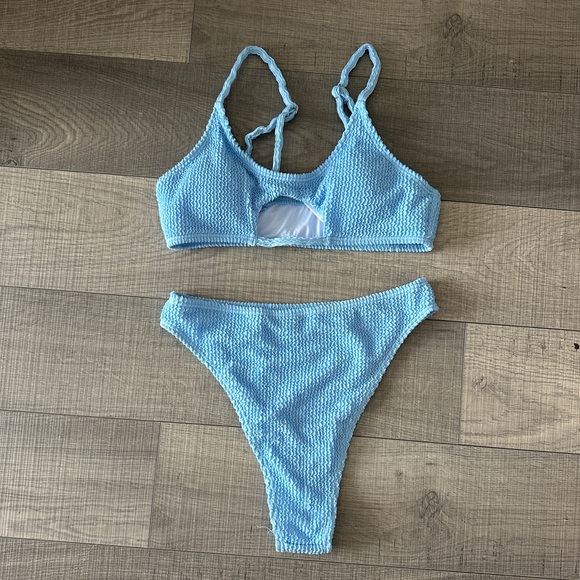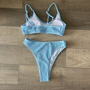 Stylish light blue bikini set with a textured design. Perfect for beach days.