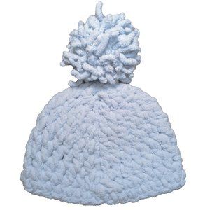 Unknown brand crochet light blue winter hat with Pompom. In good pre-owned condition.
