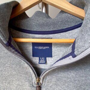 🍂 Light Gray Cotton Zip-Up Sweater with Red Embroidered Logo by U.S. Polo Assn.