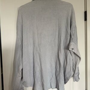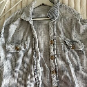 Stylish light gray waffle knit jacket with button details. Perfect for layering.