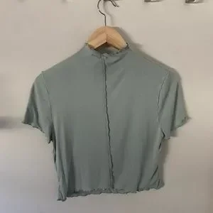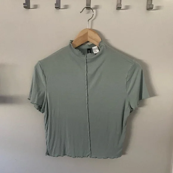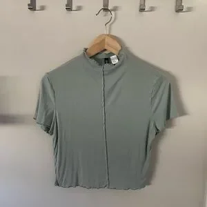 Divided Light Green Ruffled Short Sleeve Shirt. Size Large. In great condition. Barely worn.