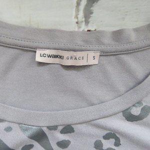 This is a very soft fun t-shirt that is a women's Size Small. Do note this t-shirt is a little longer so can be worn loosely over pants and will vary obviously depending on your height. It has a couple of small slits on each side of the t-shirt. It has only been worn a couple of times. I have included some measurements to ensure it's the right fit for you.