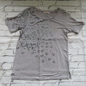 Light Grey Short Sleeve T-Shirt With Silver Animal Print Applique