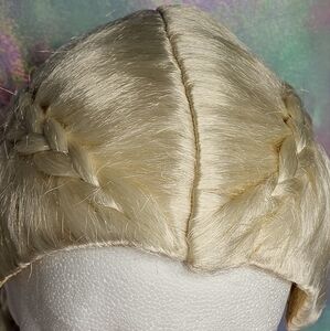 Pale icy blonde wig with double boxer braids. Washable & similar to real hair. Ready to wear, throw on & go!