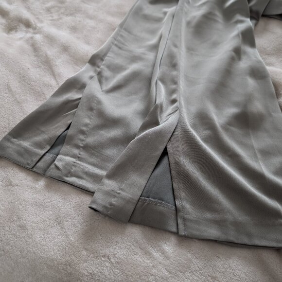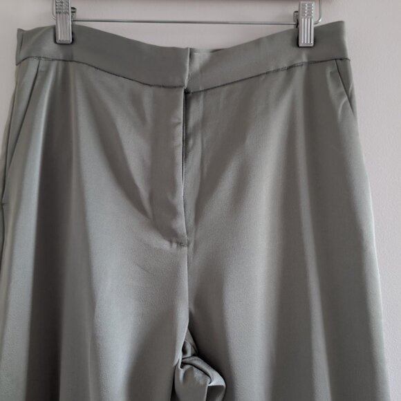 Trousers in softly draping satin. High waist, a zip fly, concealed button and hook-and-eye fastening. Diagonal front pockets, fake welt pockets at the back. In perfection condition, no rips or stains.