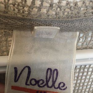 One Size light knit top from Noelle. Really cute beach cover up with a white crop underneath. There are sparse tiny sequins throughout. First a US size small or medium. Not a full crop top but inbetween crop and full length.