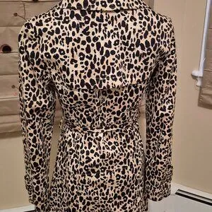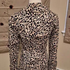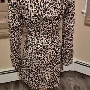 This is a lightly worn leopard print jacket. It is great for dressing up in dresses/skirts or with jeans and a top.