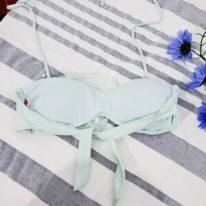 Ruffled light mint blue bikini top featuring elegant ruffles.