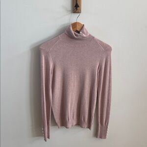 Light Pink Pearl-Sleeve Turtleneck Sweater | Elegant & Cozy - Medium