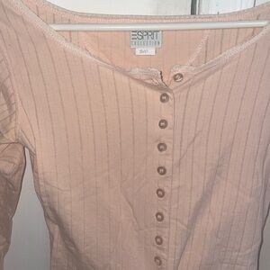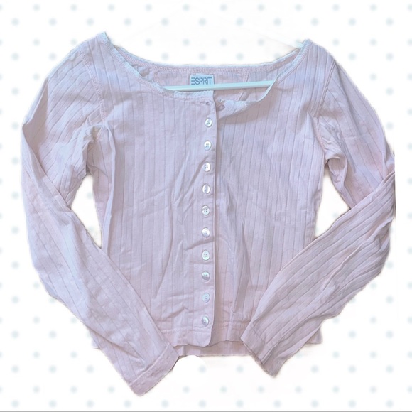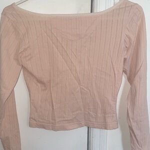 🪽 Light Pink Ribbed Button-Front Cropped Long Sleeve Top