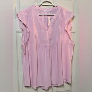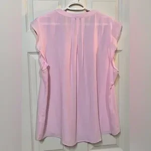 Chic light pink blouse with ruffle sleeves. Soft fabric and relaxed fit. Ideal for casual or dressy looks.