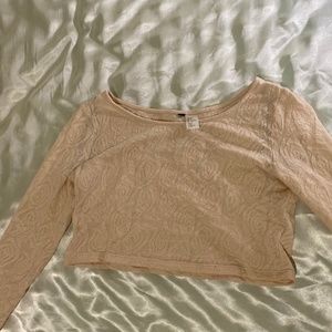 Rose patterned and slightly sheer long sleeve crop top. By slightly sheer it means if you wore no bra or like a black bra people would be able to see.