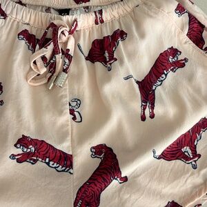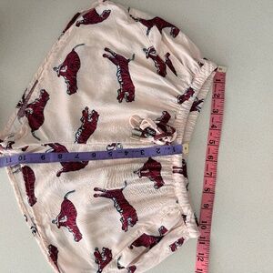 Short shorts in a viscose weave with an elasticated drawstring waist, side pockets and gently rounded hems with a small slit in the side.