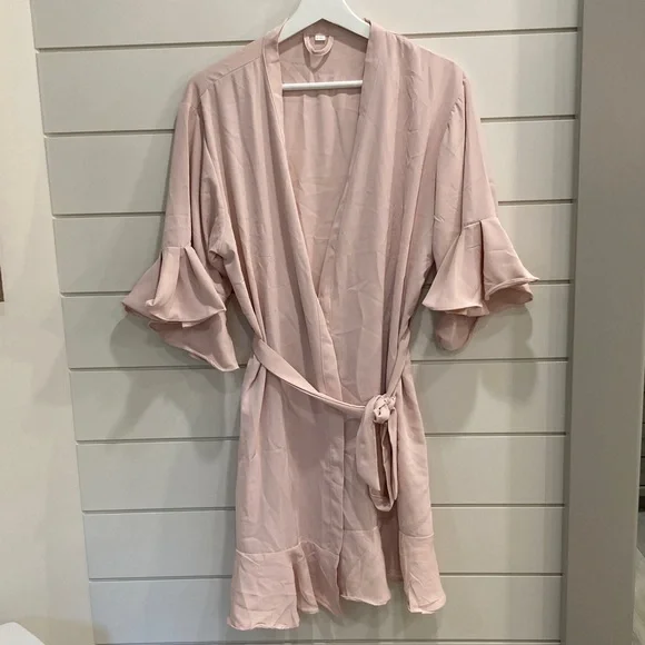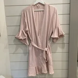 Experience comfort and style with this light pink women's robe. Perfect for lounging or sleepwear.