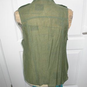 Light green sheer blouse with shoulder studs - silver buttons - 21" pit to pit - 28" shoulder to hem - new, never worn