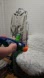 Comes with 3 hard foam balls. Power button. Works with 3 AAA batteries (included but they are old).