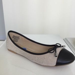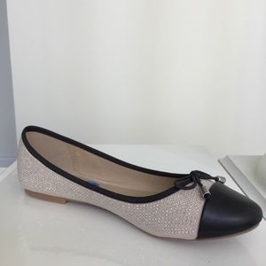 - beautiful light beige silver embellished/black ballerina style flats that fit size 7 1/2