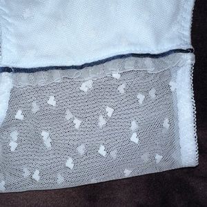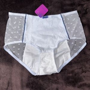 Lolita Kawaii Menstrual Panties. Covered in sheer fine mesh with cute little ❤️ hearts. A delicate light blue panel in front and white in the back.
