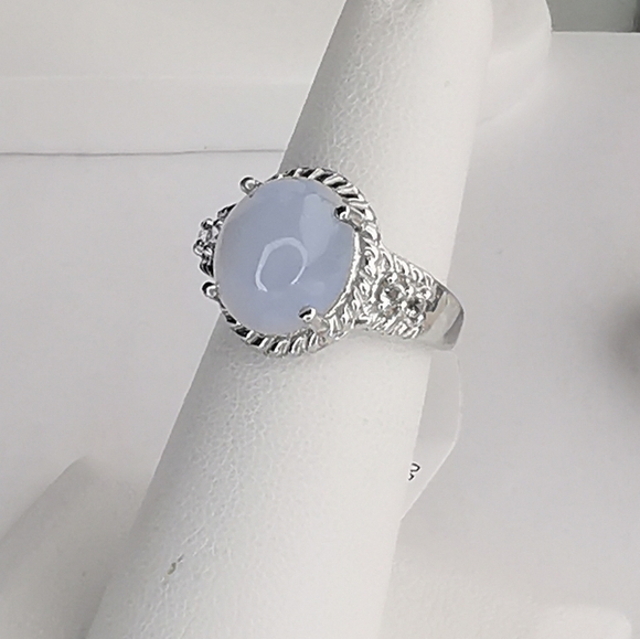 Namibian Light Blue Chalcedony set in Sterling Silver with 4 accenting diamonds