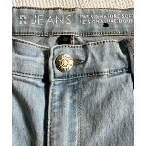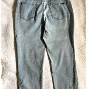 Ladies size 12 soft stretch denim capris by R Jeans. Light blue jean in color. Bottom decorative snap edging. Note: Color of jean is actually lighter than pictures....more like a light washed blue.