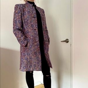 Beautiful Italian coat in purple/pink/grey/blue with silver/golden thread throughout, purchased in France for 800 euros. Size 4-6 approximately.