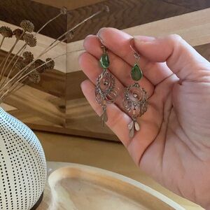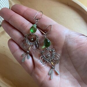 I bought these in India once upon my travels and have worn them a fair amount over the years. Beautiful patterns in the details. FYI to a potential buyer so as to set expectations accordingly…these hooks are a little bent out of shape from use. It would be quick easy fix with a pair of needle nose pliers and you could even switch out the hooks for new shepherds hooks if you like. I decided to post them as I had bought them for authenticity. Feel free to message if you have any questions before purchase. Bundle with 2+ items and I will send a discount offer to consider.