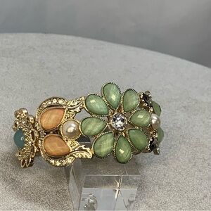Light green peach blue floral flower clamper bracelet costume jewellery