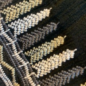 This lightweight shawl/poncho has short sleeves and features beautiful embroidery.