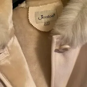 Ivory light coat with faux fur trim. Brand new without tags. Sz L