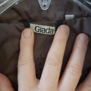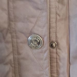 Light weight mild weather jacket. Lined with cell phone and zip closed pockets. Side zipping outer pockets. Zip and snap closing front. Size 44