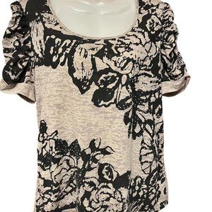 It has sone sparkle at the front and the sleeves have a little puffy detail please see pictures